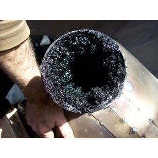 2. Скупчилася в трубі сажа зменшує просвіт димоходу, і може його перекрити зовсім. Відповідно тяга в котлі буде слабкою або взагалі дим піде в приміщення. Так як скупчення сажі вбирають вологу і на неї осідають всі хімічно активні компоненти диму, починає кристалізуватися і тверднути. На стінках труби сажеві відкладення ущільнюються і стають щільними як цегла.